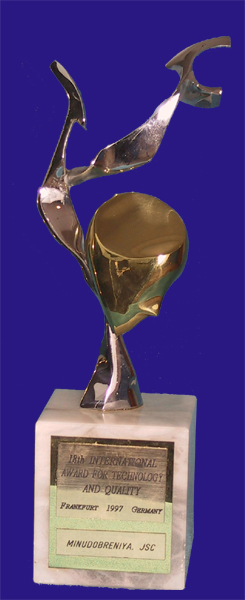 The highest award of the European Branch of Alliance «ADM Business Consulting» «GRAND PRIX-2004» was given to MINUDOBRENIYA JSC for considerable contribution into development and strengthening of international comminication within the terms of the international diversified exhibition fair Hannover Messe-2004 (Germany Belgium Holland). |