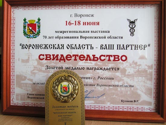 Golden Medal «Voronezh Region is Your Partner» |