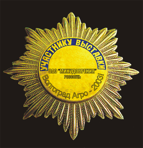 Minudobreniya JSC was given a Gold Star for high quality and wide range of products while participating in the Exhibition “Volgograd Agro – 2003” |