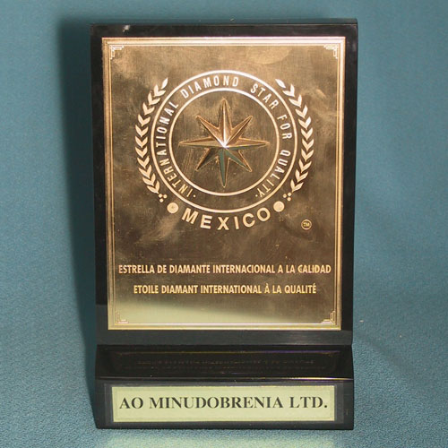 The enterprise was awarded with Crystal Nike and international Diplomas for outstanding results in the sphere of diversification of products, quality improvement and great environmental concern. |
